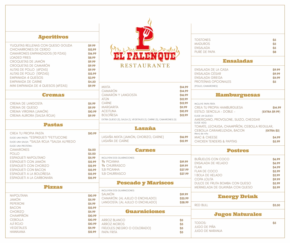 Descubre una experiencia culinaria única con nuestro menú. En Palenque Pizzería Restaurant encontrarás una gran variedad de opciones deliciosas.